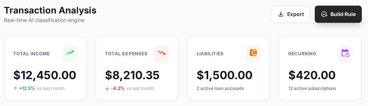 AI dynamically asks relevant questions based on business type, ensuring all critical income drivers are captured.